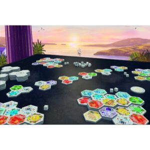 - Placez la tuile restante en première position, puis prenez l’une des piles de tuiles et retournez celles-ci, face visible, les unes à côté des autres, pour compléter le Chantier